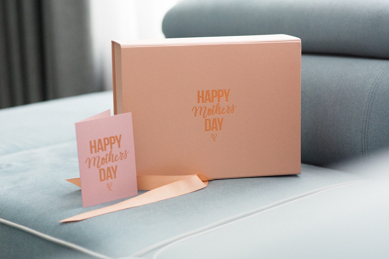 Each box has light pink tissue paper and a Happy Mothers day card.