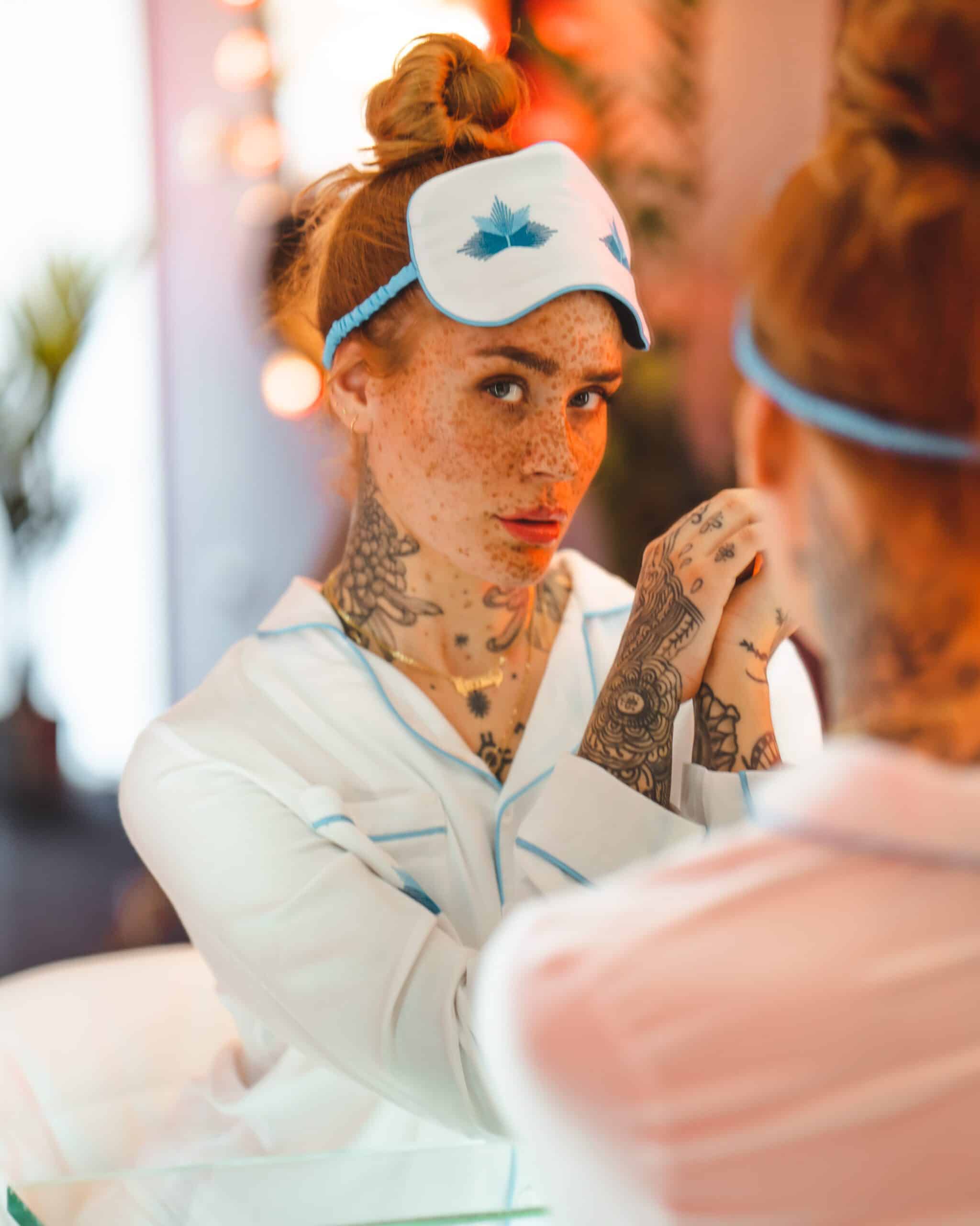 Embroidered with the classic turquoise piping, and the design that is synonymous with our beloved Polish Sheepers, this sleep mask will make a stunning addition to your night-time attire, and can be matched with our Sen Turquoise pyjamas. Purchase the Sen Turquoise pyjama and slipper set and the sleep mask comes free.