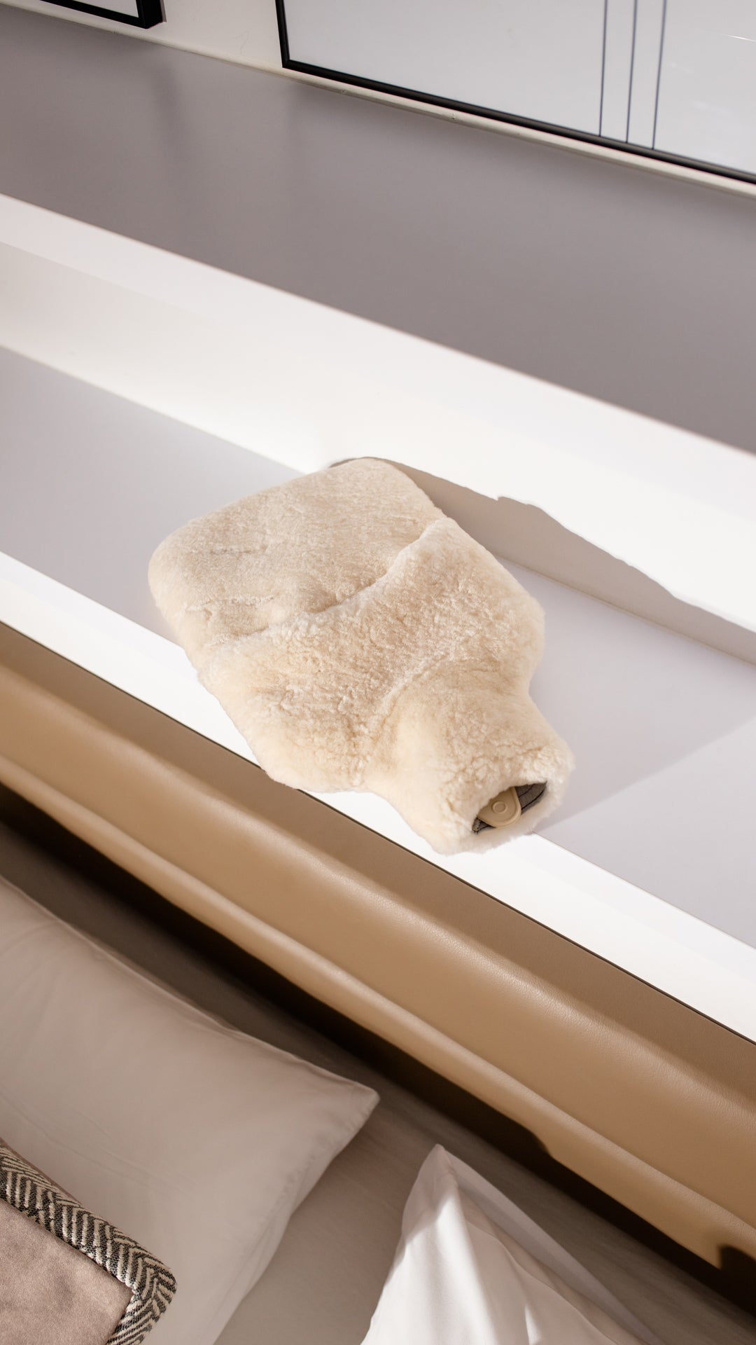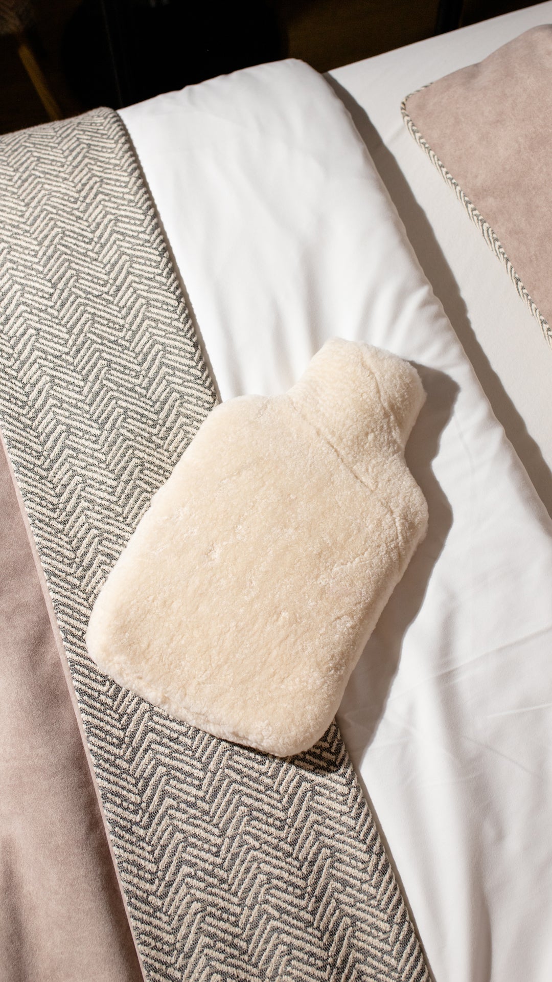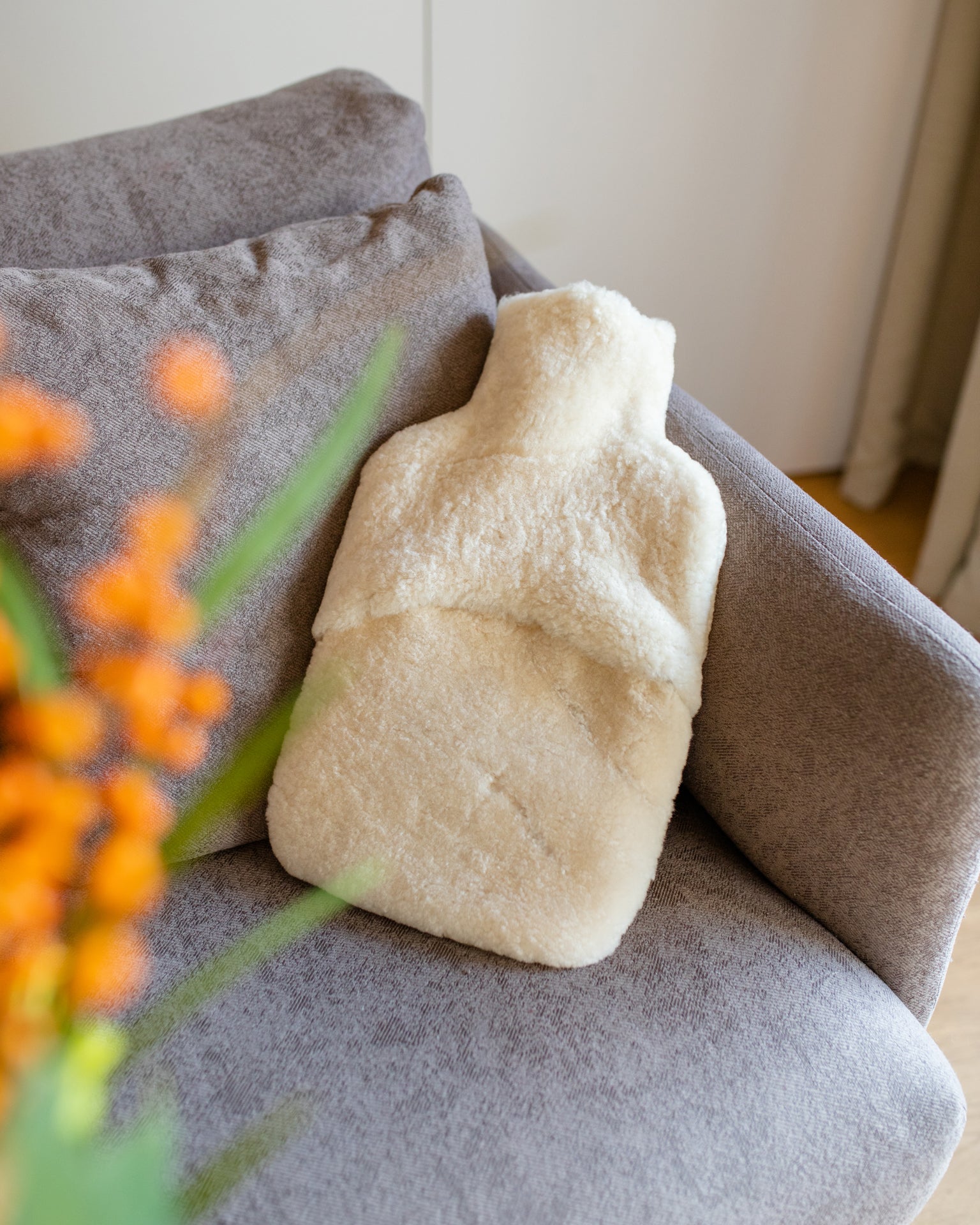 Sheepskin hot water bottle cover in cream
