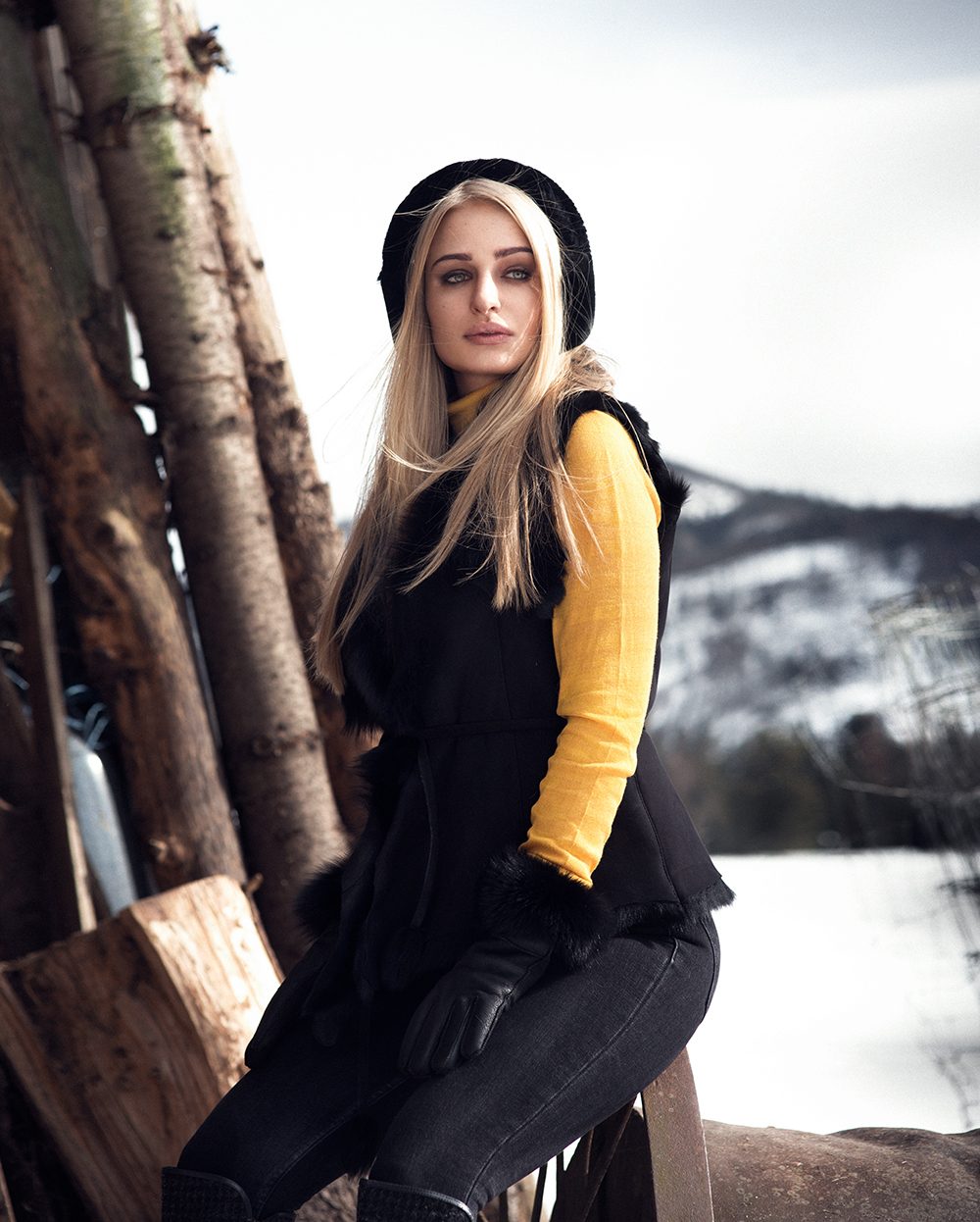 It boasts a generous collar giving a more glamorous feel. A perfect piece transitioning through the seasons.
