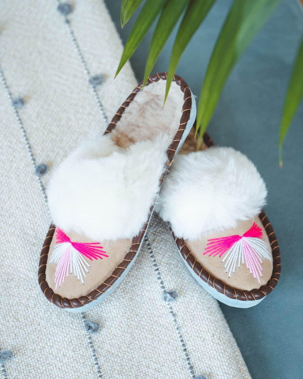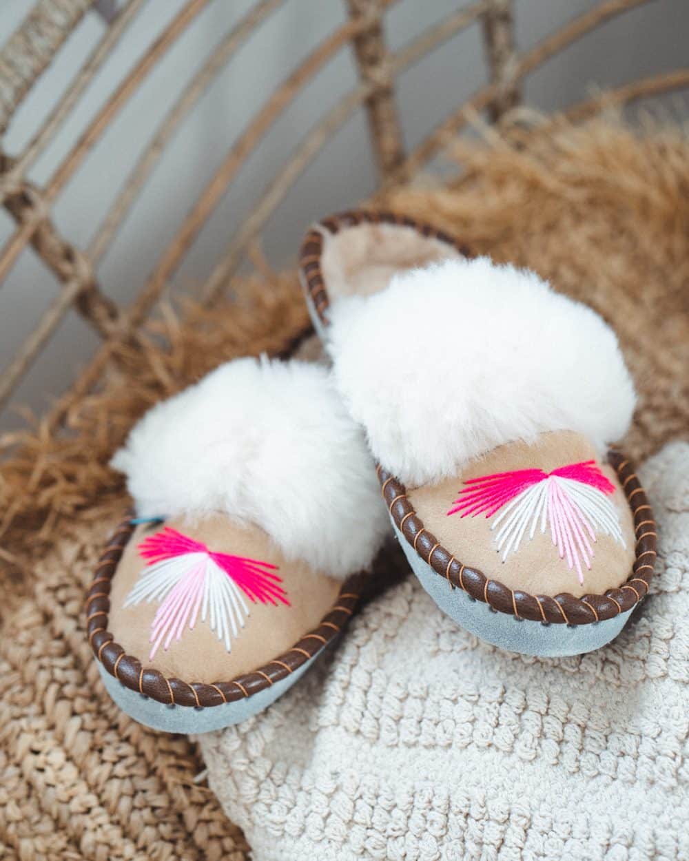 Meet the Sen Pink Mule - offering a modern and colourful update on a traditional mule slipper, handmade from luxurious 100% sheepskin.