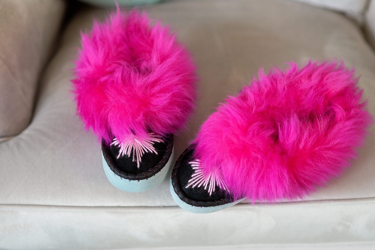 Please note: These are handmade, sustainable sheepskin slippers. There may be some lengths that seem longer, if this is the case on yours please trim them as appropriate